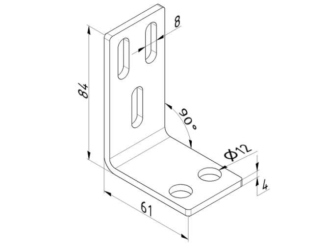 Łącznik L=80mm prowadnic z kątownikiem pionowym