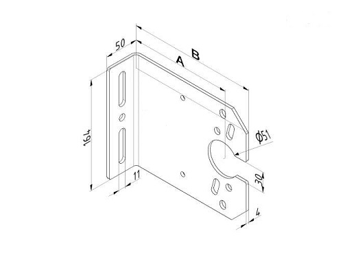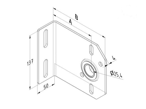 Uchwyt boczny z łożyskiem odległość od ściany -152 mm, kg – 180 PARA grubość 4mm