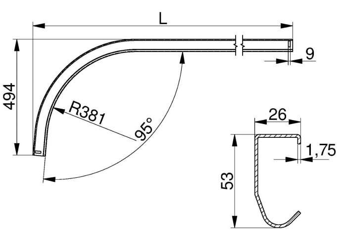 Prowadnica 1,75mm z łukiem 305-92, L=5650mm zastosowanie w prowadzeniu przemysłowym LHI