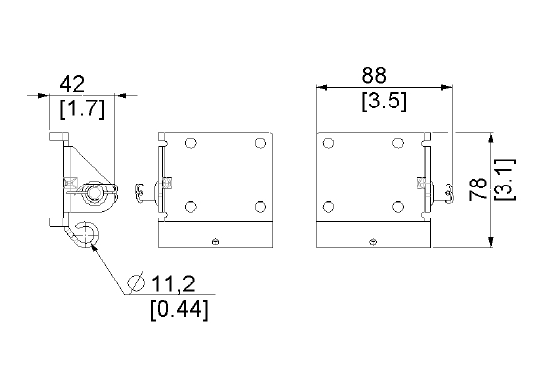 Dolny uchwyt boczny aluminiow, rolki z wałkiem fi 11mm, kg max 500